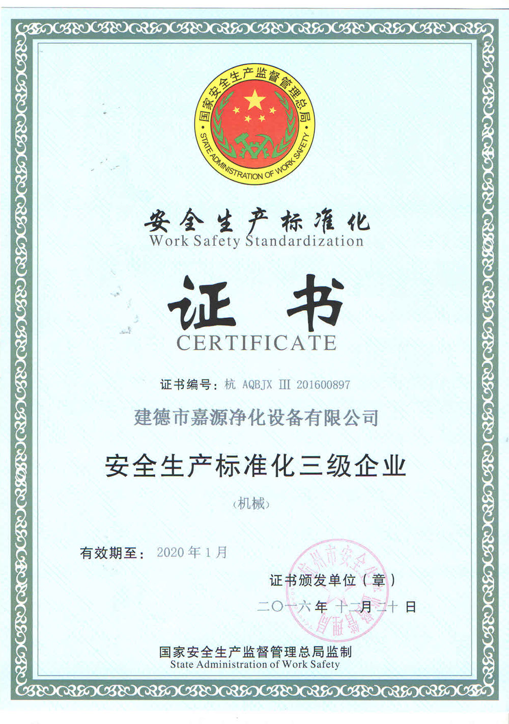 安全生產(chǎn)標準化三級企業(yè)