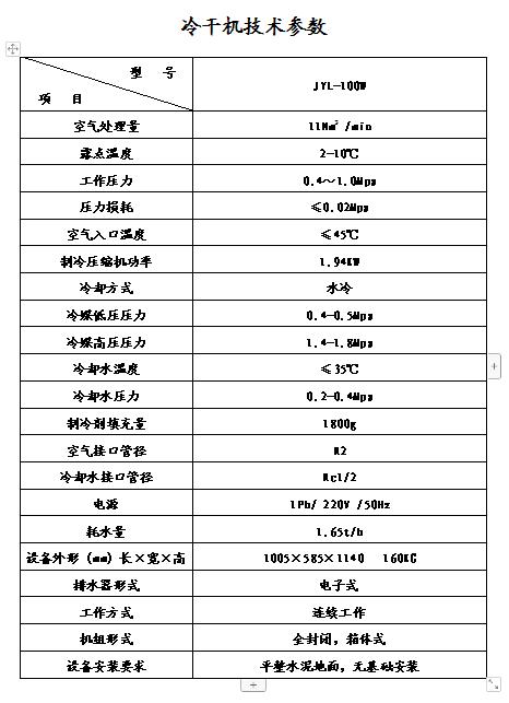 當(dāng)進(jìn)氣溫度過高時(shí),飽合水蒸氣含量急劇升高,此時(shí)必須對進(jìn)氣預(yù)先降溫后才能進(jìn)入冷干機(jī)的制冷系統(tǒng),通常在冷干機(jī)前增加后部冷卻器,當(dāng)進(jìn)氣溫度≤80℃時(shí)可選用本公司高溫型冷干機(jī)。
